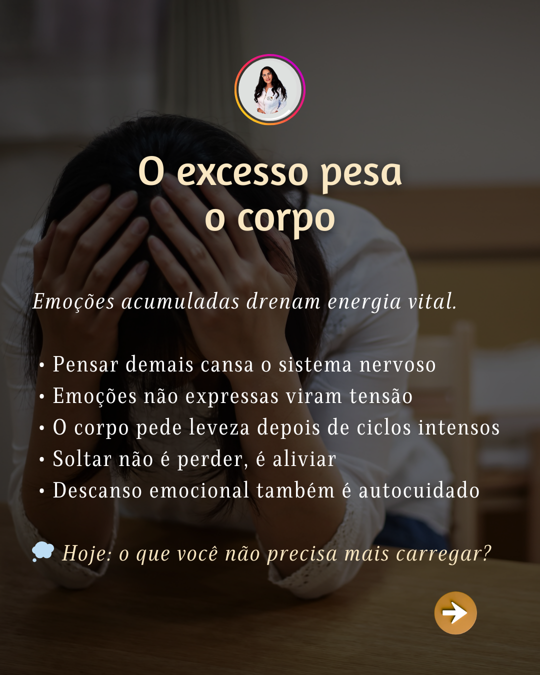 Pensar demais sobre tudo, tentar dar conta de tudo e segurar sentimentos por muito tempo sobrecarrega o sistema nervoso. Emoções não expressas tendem a se transformar em tensão, desconforto e sensação de peso interno. Por isso, depois de ciclos intensos, o corpo naturalmente pede leveza, pausa e cuidado.