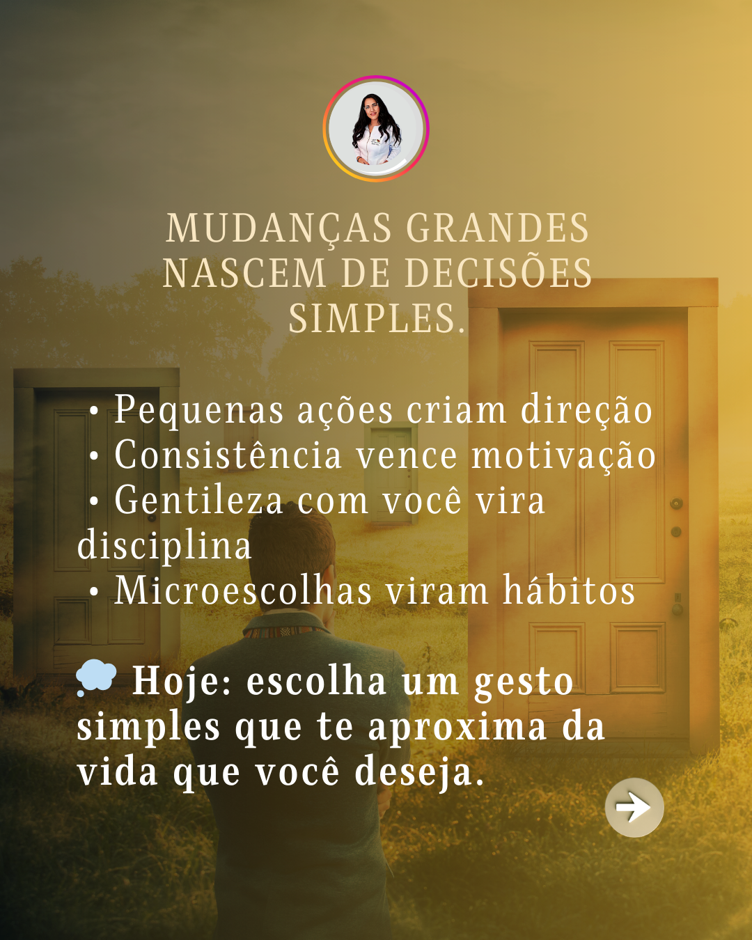 Hoje, escolha conscientemente um gesto simples que te aproxime da vida que você deseja viver.