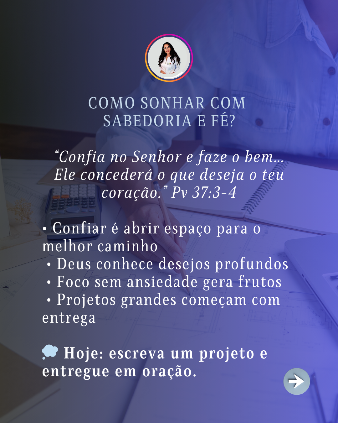Confiar não significa passividade, mas abertura para que o melhor caminho se revele. Deus conhece os desejos mais profundos do coração e sabe conduzir cada passo no tempo certo. Quando o sonho nasce acompanhado de fé, ele se torna mais leve, mais lúcido e mais sustentável.