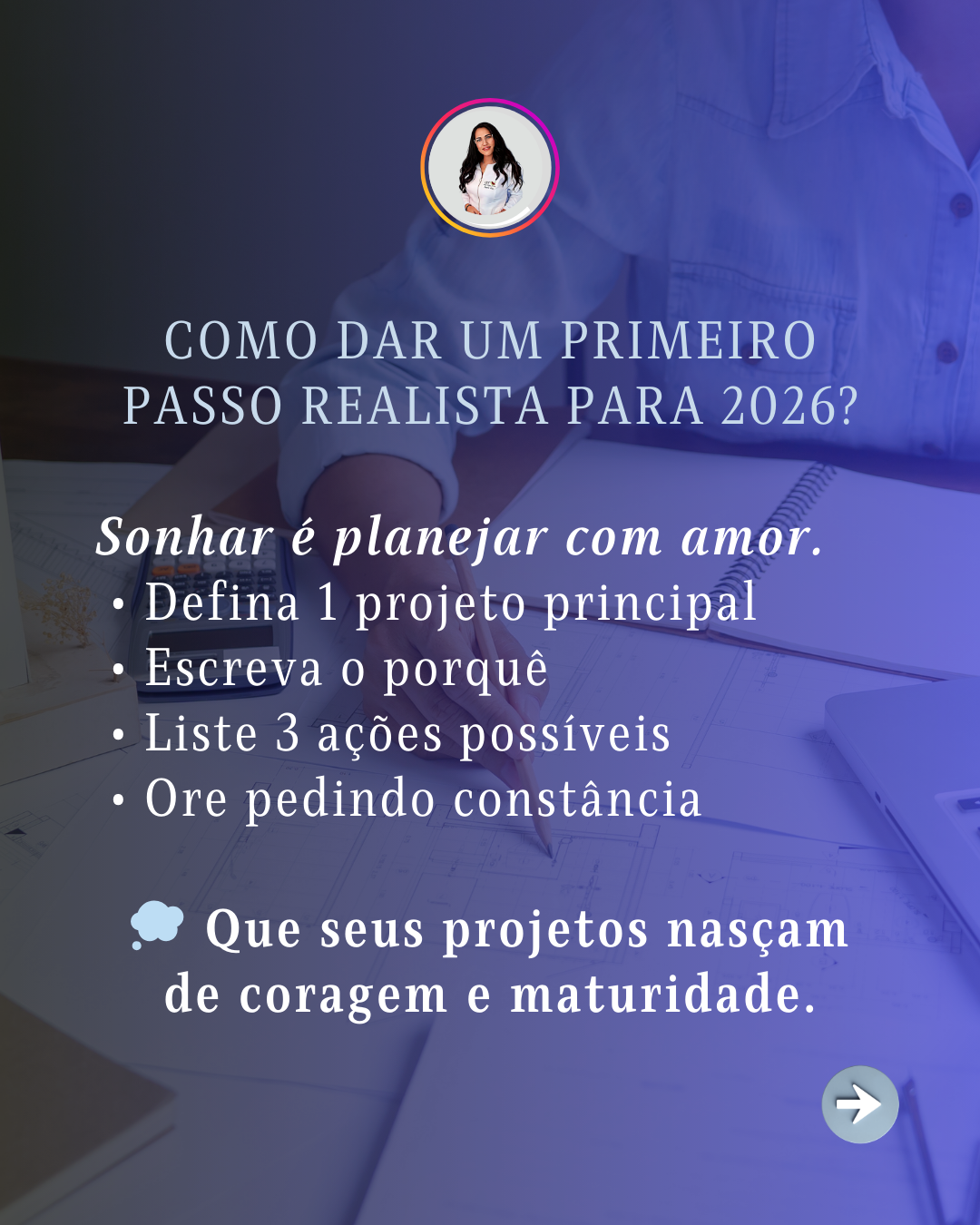 Quando o projeto nasce do coração e é sustentado pela fé, ele deixa de ser peso e passa a ser caminho. Que seus projetos em 2026 sejam expressão de coragem, maturidade e verdade.